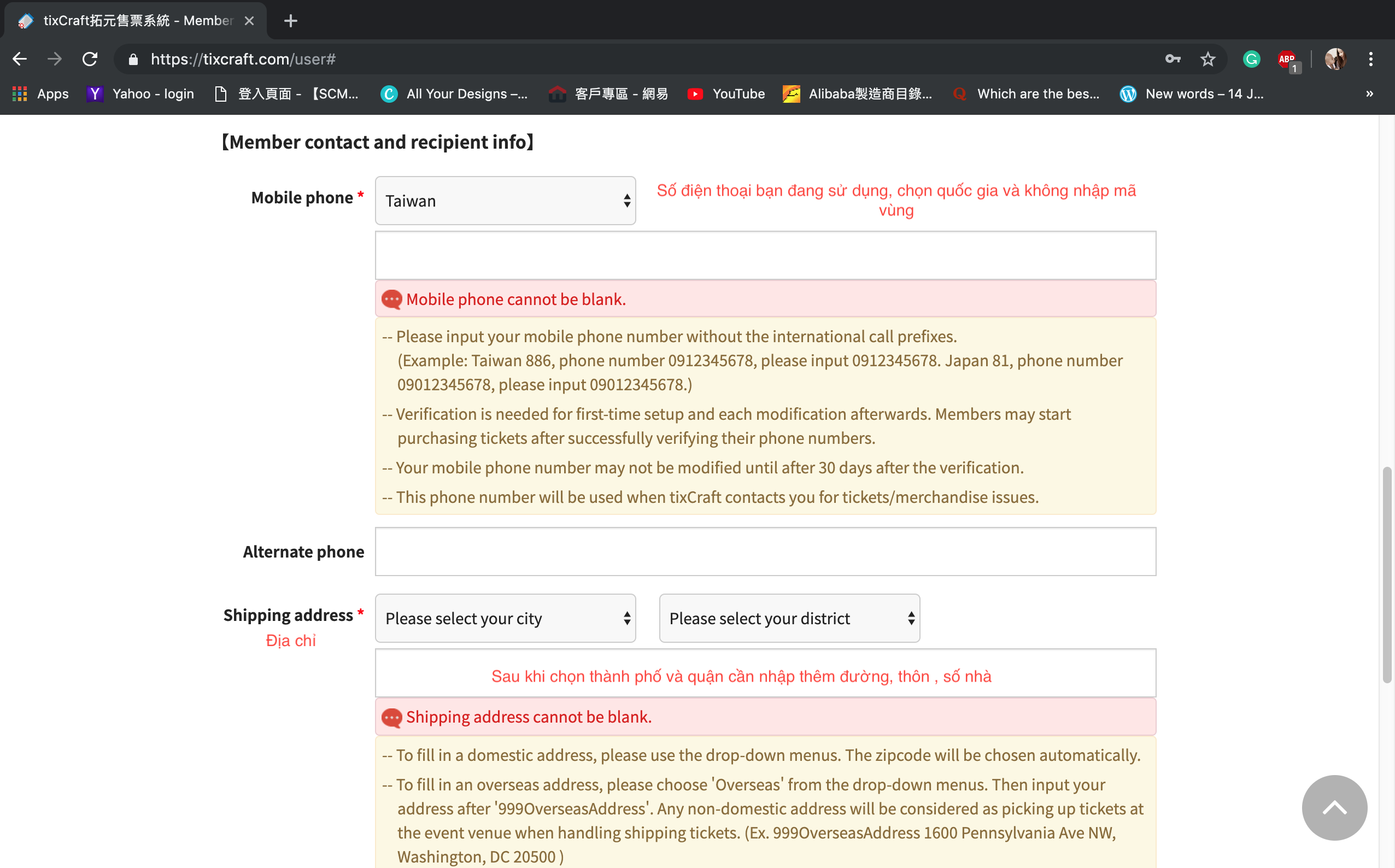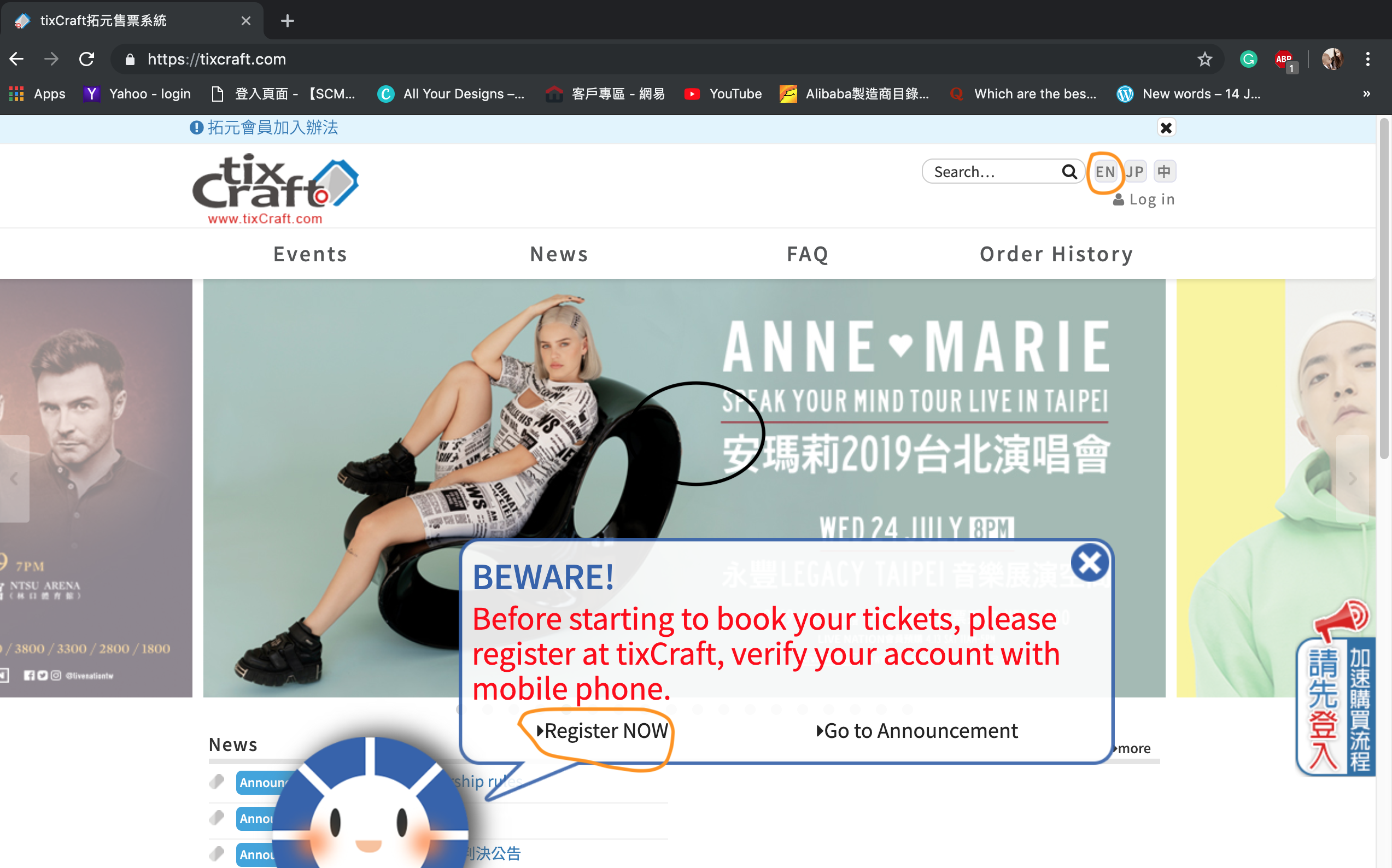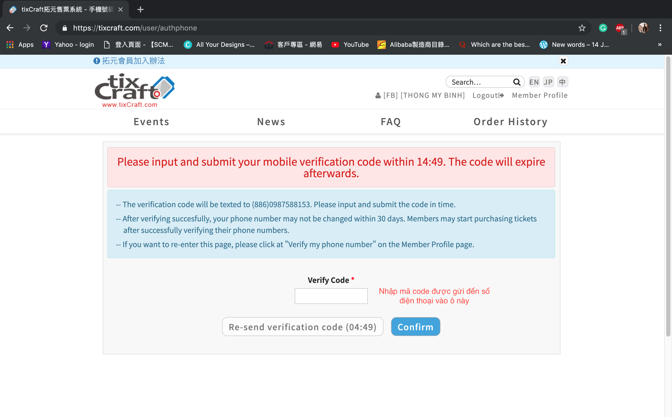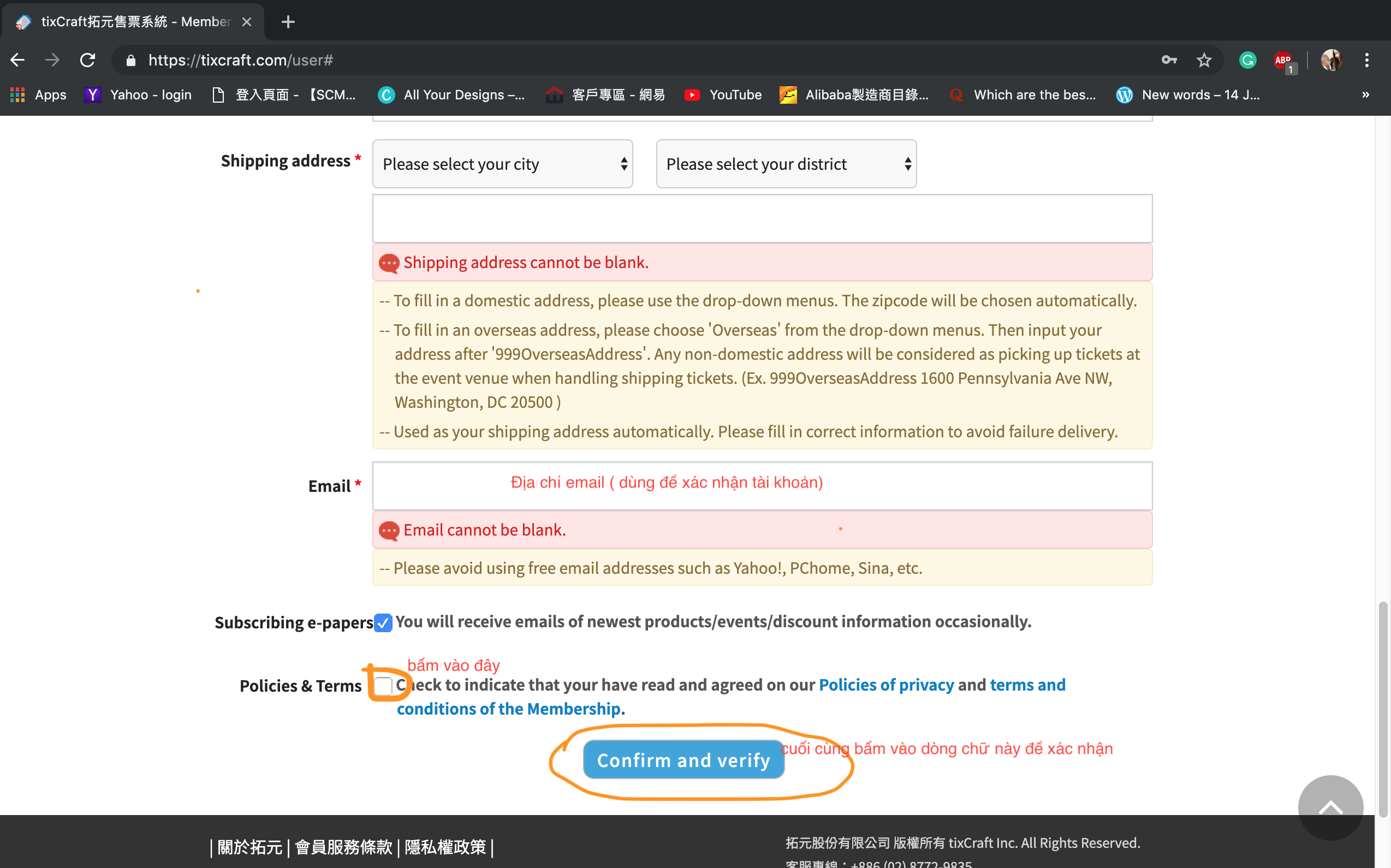 Trước khi bắt đầu, bạn phải nhớ mình có 2 tài khoản phải tạo. Một là ở https://tixcraft.com/ để mua vé. Hai là tài khoản tại http://www.livenation.com.tw để lấy mã code presale ( nếu bạn mua vé pre-sale, nếu mua vé vào ngày bán chính thức thì không cần mã này).