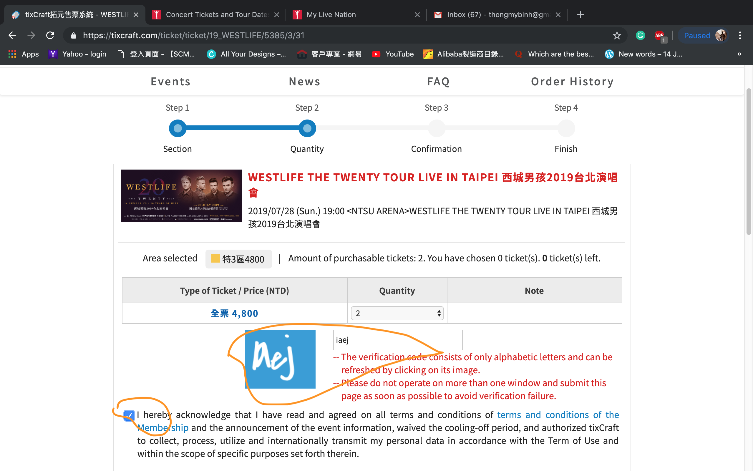 BƯỚC 5: Quay trở lại trang Tixcraft để mua vé, vì ở đây Backstreetboys chưa mở bán nên mình lấy vé Westlife làm ví dụ.