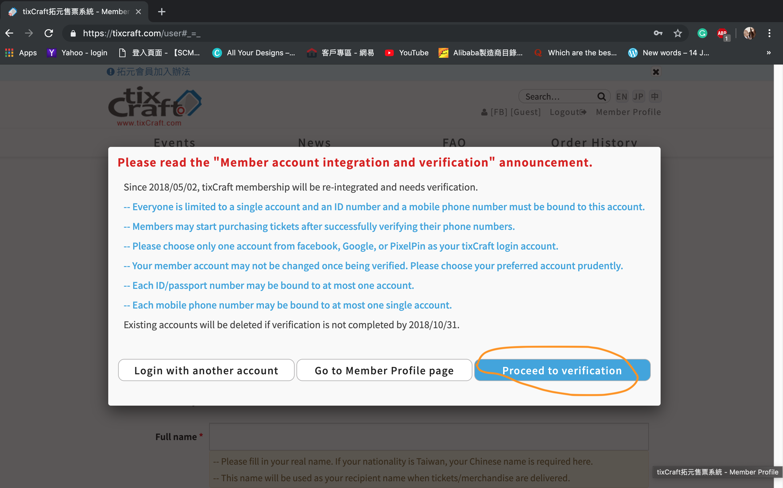 - Sau đó bạn bấm chọn ” Proceed to vertification” như hình bên dưới. Chú ý là nên nhập thông tin chính xác, vì mỗi mã số hộ chiếu, số điện thoai đều chỉ được đăng kí cho một tài khoản, và bạn chỉ mua được vé sau mỗi lần xác nhận số điện thoại thành công.