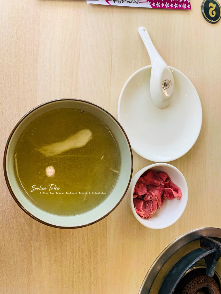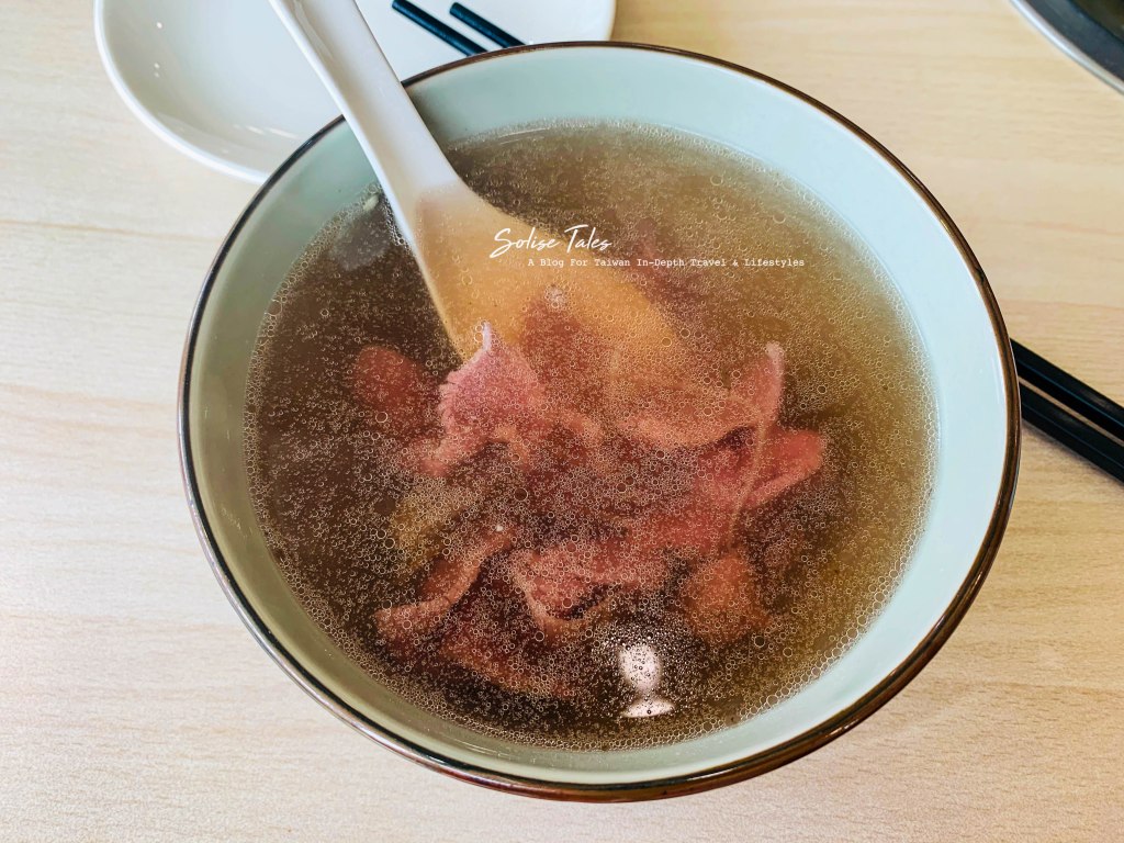Thịt bò ăn không đủ đô thì bạn có thể gọi thêm rau, nấm, nghêu, các thứ ăn kèm… Canh bò thì nhìn có vẻ đơn sơ nhưng rất là thơm, ăn miếng đầu tiên là biết nấu từ xương bò, ngọt thanh, cũng dễ hiểu thôi nhà ngoài ta nuôi bò bán thịt bò mà, xương bò bỏ vào hầm canh thì hợp lý rồi. Đây đúng là kiểu ăn 養生 trong truyền thuyết mà người Đài thường hay bảo nhau luôn đấy, không bột ngọt không gia vị, ăn vị tinh túy nhất của thực phẩm mà thôi nhưng vì bò ngon bò ngọt nên mình vẫn ăn ngon lành.